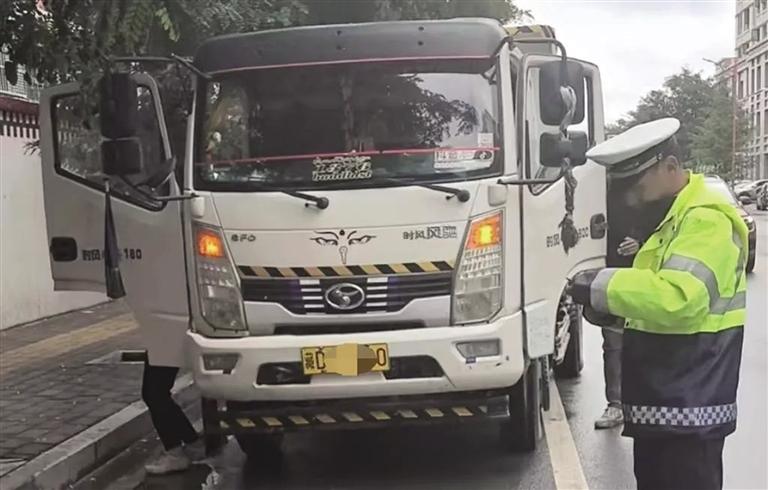 “师傅您好,现在属于货车禁止入城时段,请您绕行。”行动中,城南大队以进出城路段为重点,安排警力对重点路段开展巡逻管控、定点提示,以面对面提示、劝导的方式,向驾驶员宣讲货车禁止入城时段以及违规入城涉及的法规条例,主动询问驾驶员目的地,告知其绕道行驶路线。