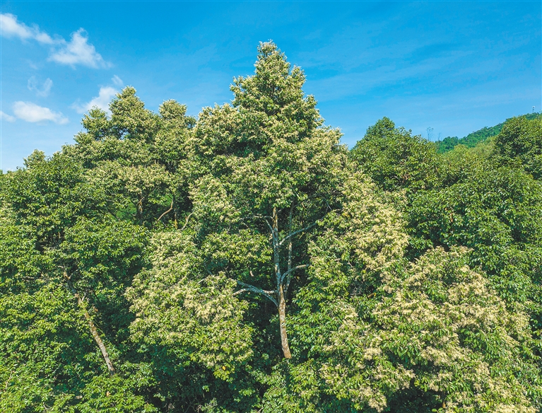 海南省枫木实验林场一棵开花的坡垒树。海南日报全媒体记者 李天平 摄