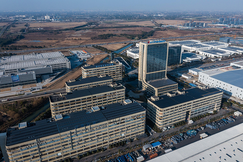 1月10日,嘉兴秀洲光伏小镇众多企业的屋顶安装了太阳能光伏发电设备(无人机照片)。