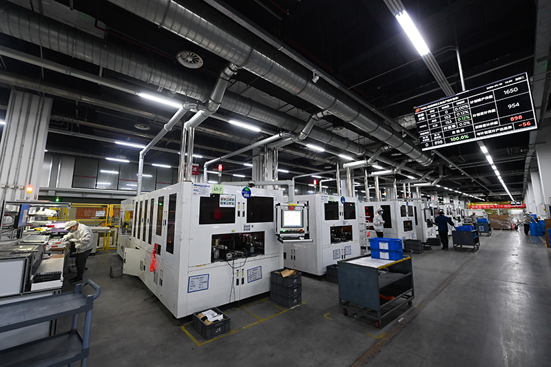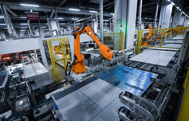 1月10日,在位于嘉兴秀洲光伏小镇内的一家科技有限公司,自动化流水线在生产光伏设备组件。