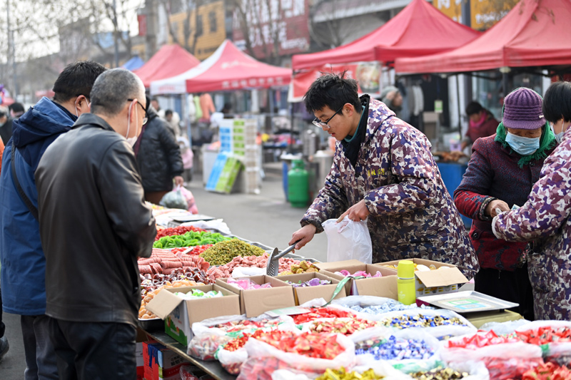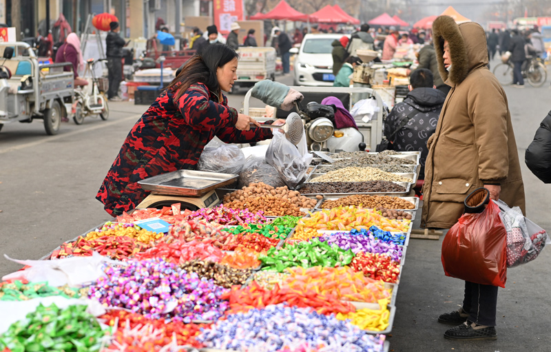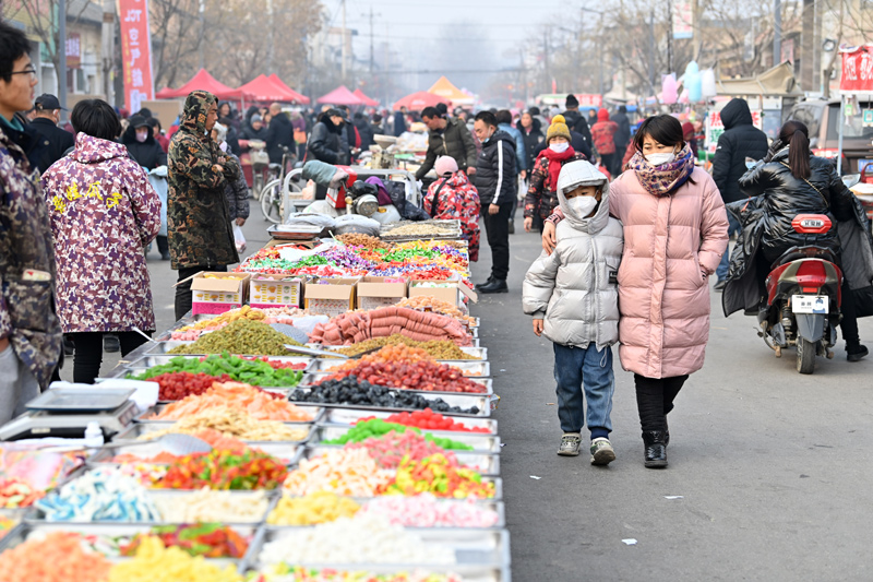 春节临近,年味渐浓。在山西省运城市盐湖区金井乡的年集上,不少周边地区的村民前来采办年货,迎接新春的到来。