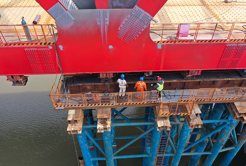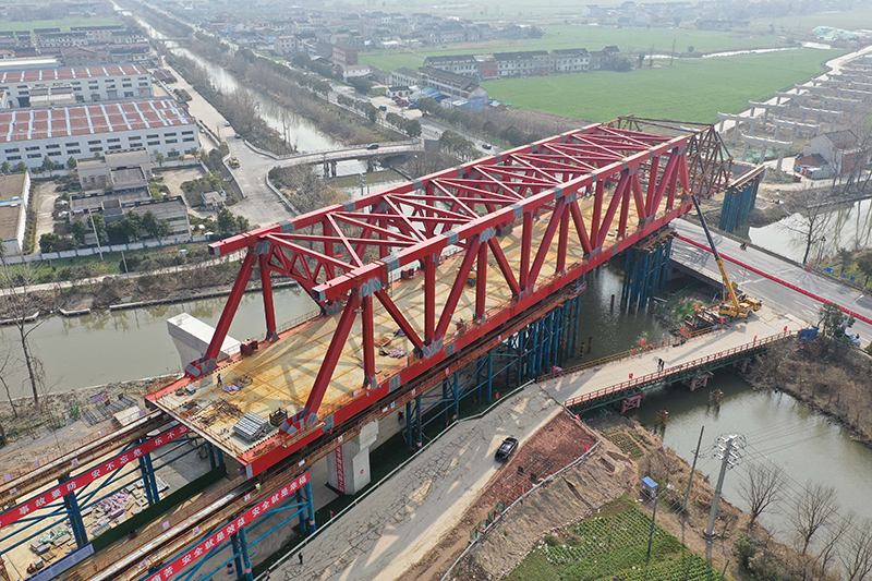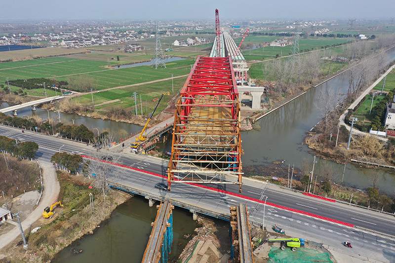 目前,中铁二十局常泰长江大桥南北公路接线工程跨G345特大桥钢桁梁顶推作业有序推进。常泰长江大桥连接江苏省的常州市与泰州市,是江苏“十五射六纵十横”高速公路网的重要组成部分。