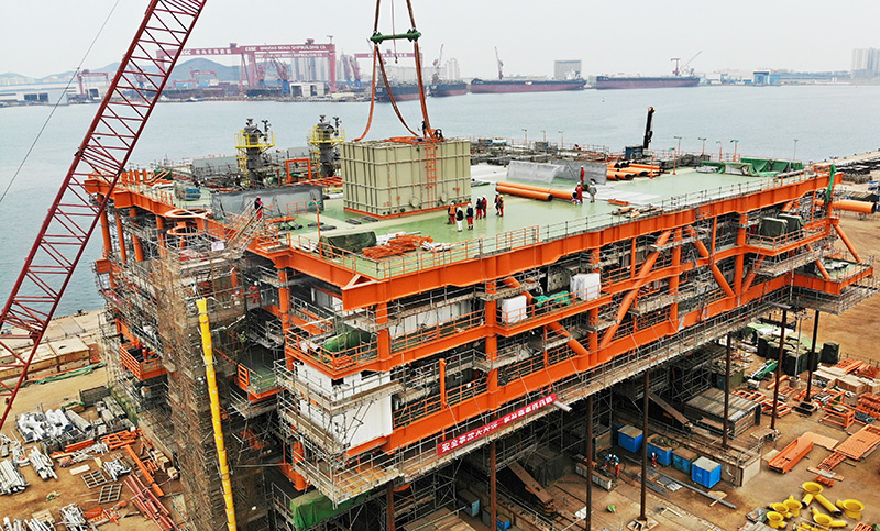 渤海湾千亿方大气田最大组块青岛封顶