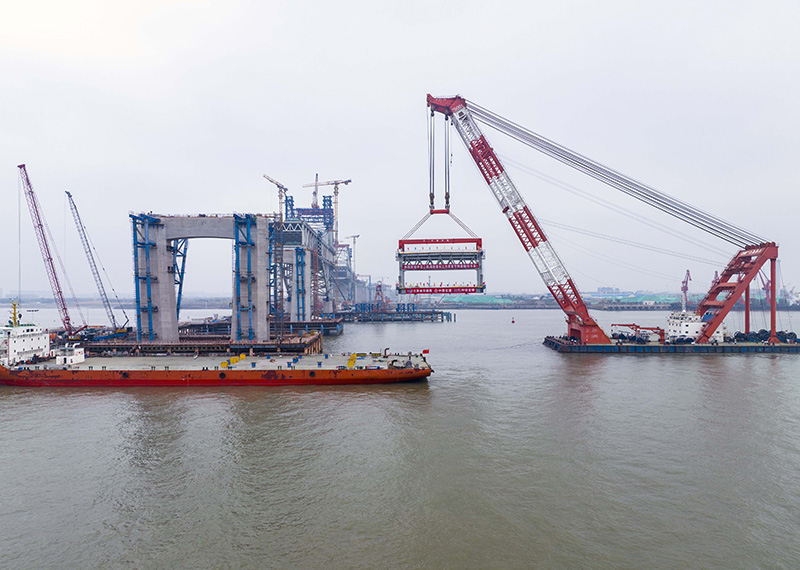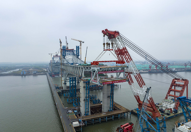 常泰长江大桥主航道桥钢桁梁架设全面展开