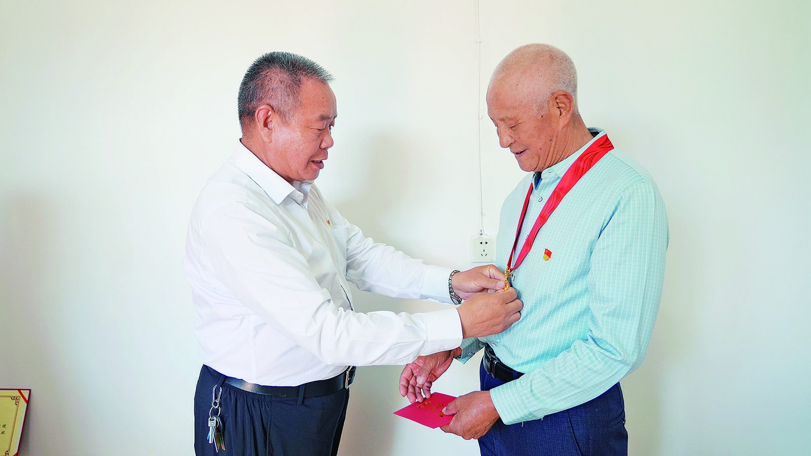为老党员佩戴“光荣在党50年”纪念章 海北州委组织部供图
