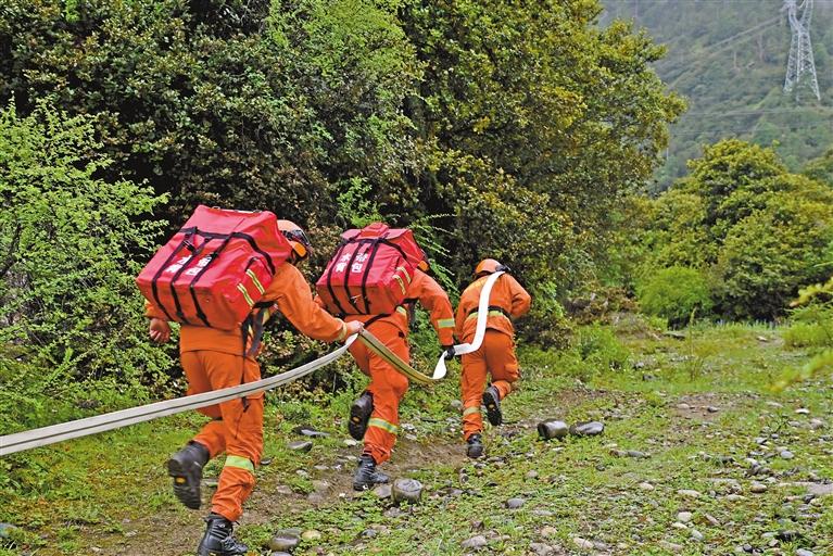 林芝市森林消防支队巴宜中队开展山地水泵架设与撤收实战训练