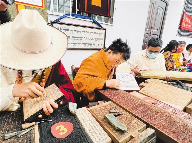 参加“乡村振兴 那曲奋进”活动的那曲农牧民用传统技艺雕刻参赛作品。