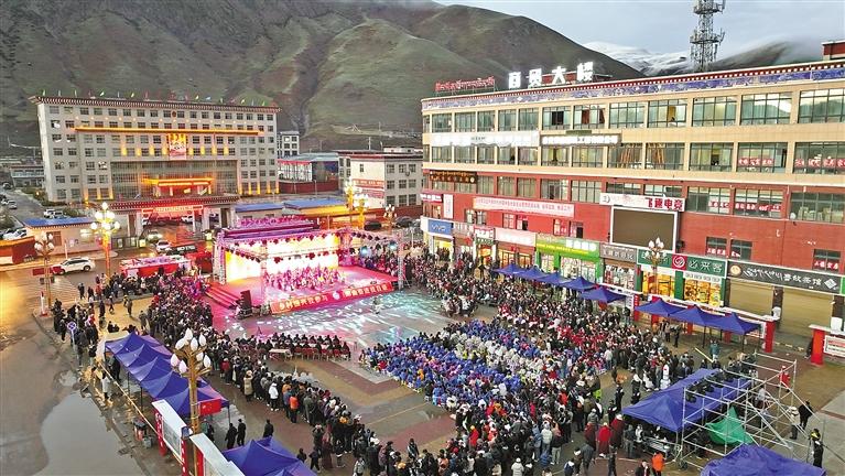 比如县“乡村振兴 那曲奋进”活动成果汇报晚会演出现场。